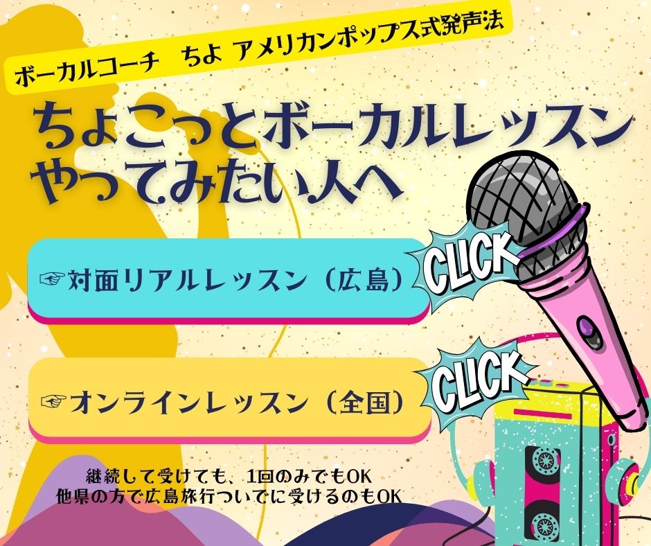 洋楽・邦楽でカッコい歌よく歌う方法、アーティストの声の興味深いお話など、120分結構充実した内容です♪ちょっとやってみたい人におすすめのレッスンをご紹介。詳しくはこちら